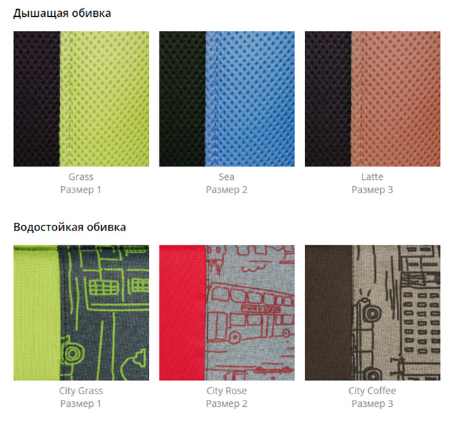 ширина сидения | 19 — 25 см | 22 — 30 см | 24 — 34 см |