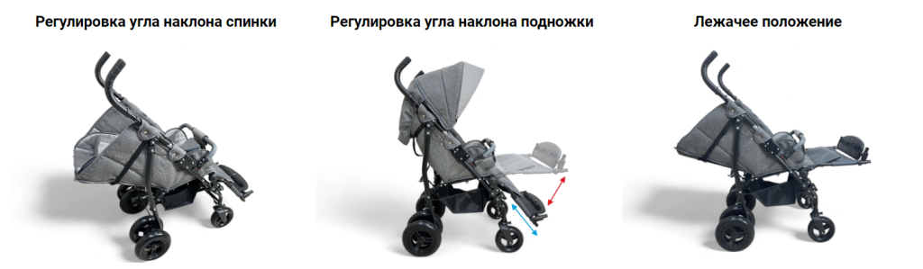 Конструкция коляски представляет собой простой в использовании механизм с множеством регулировок.