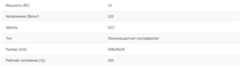 Лампа бактерицидная TIBERA  15W G13 без озона фото 1