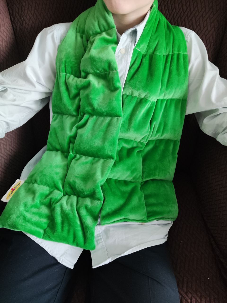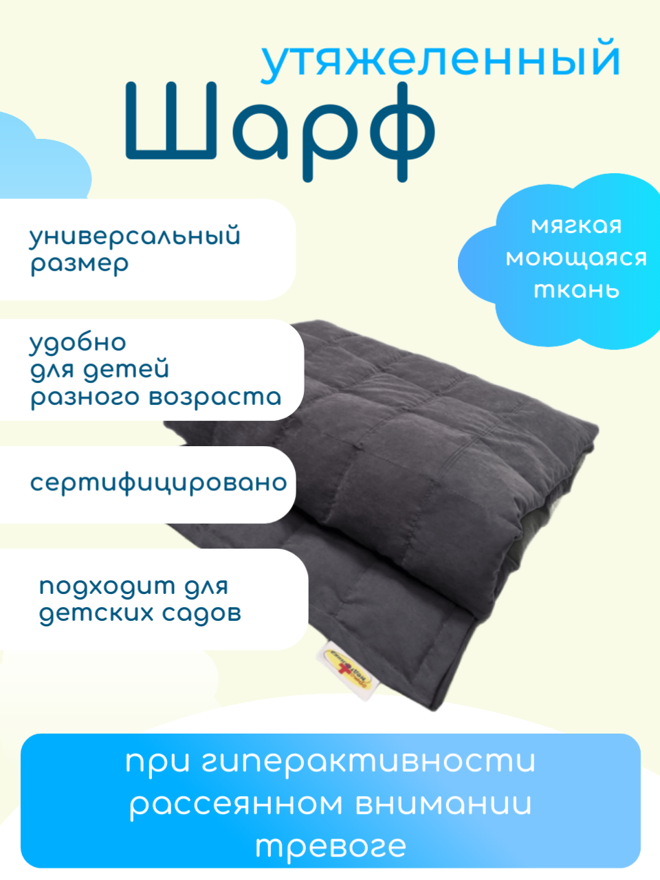 Утяжеленные шарф успешно используют и в работе с гиперактивными  детьми. Ощущение давления извне успокаивает, концентрирует внимание.